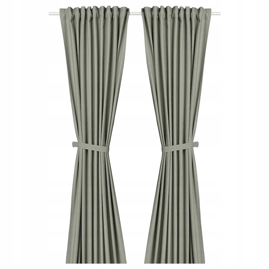 Zasłona z wiązaniem, 2 szt., jasny szarozielony/na taśmie, 140×300 cm