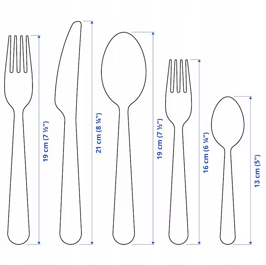 ⭐ W komplecie 60 sztuk: 12 widelców, 12 noży, 12 łyżek, 12 łyżeczek oraz 12 widelczyków do deserów/sałatek.