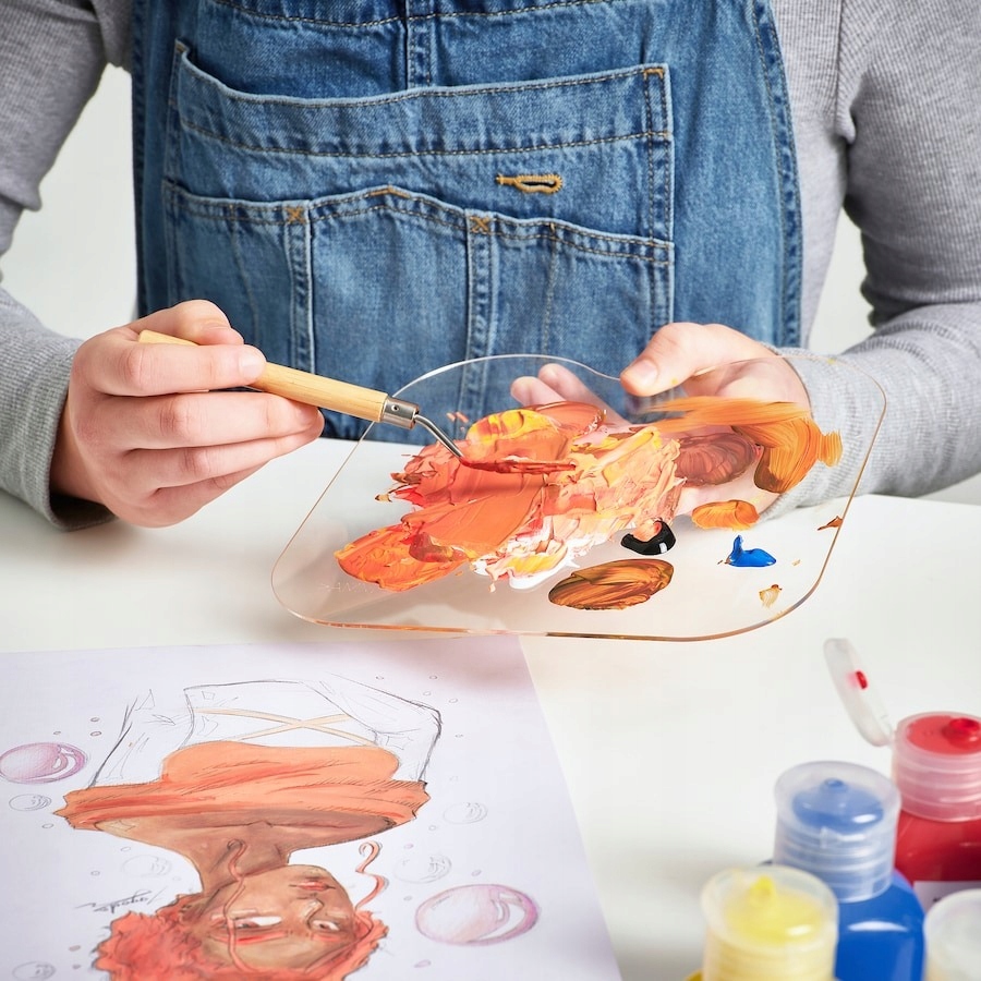 - Można uzupełnić płótnem malarskim w bloku i farbami akrylowymi SOLFÅGEL oraz pędzlami MÅLA.